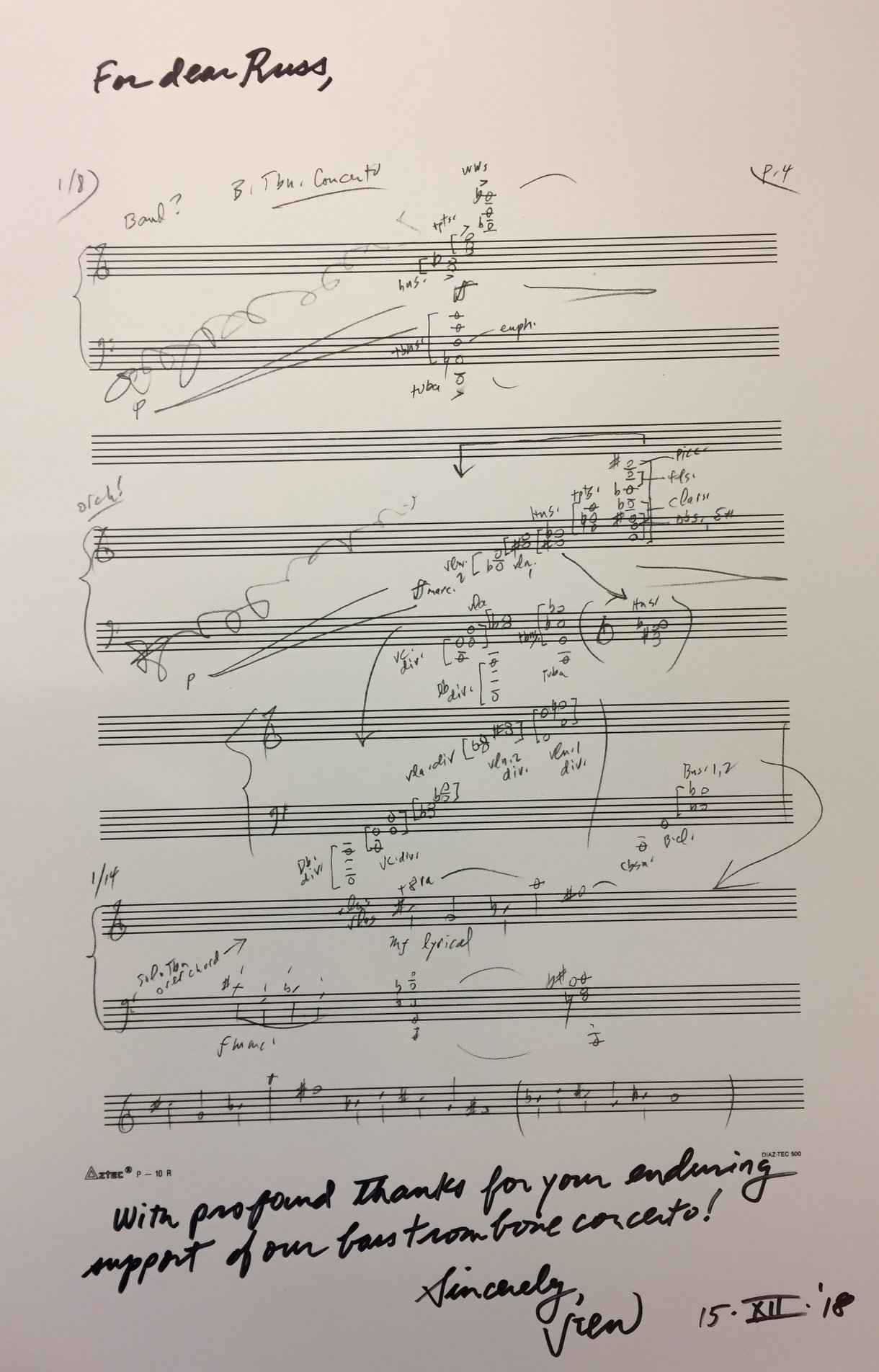 Dr. Zokaites is the lead commissioner for the Fuchs Bass Trombone Concerto Consortium. The project began in March 2015 and is currently have it's premiere season.