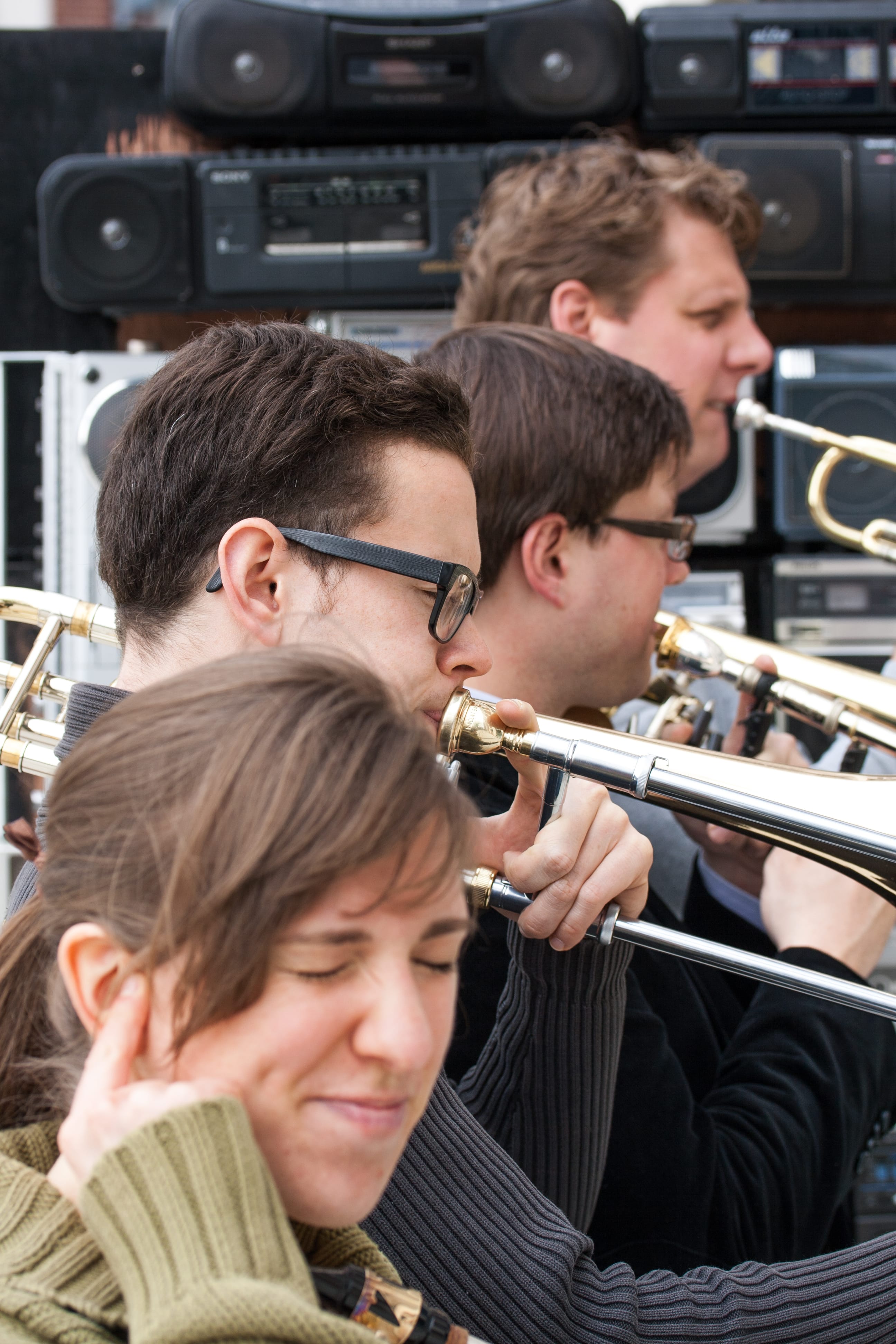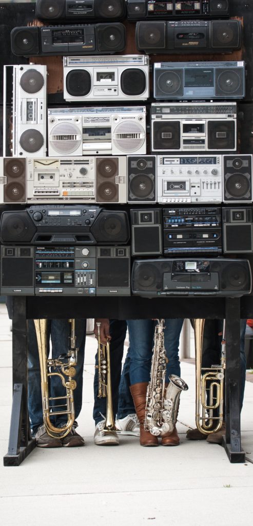 Recycled noise pollution performed through recycled boomboxes. This electro-acoustic show sought to change the way people heard the world around them. Seven composers sampled their neighborhoods, iconic sounds, and nature to assemble instantly relatable soundscapes.
